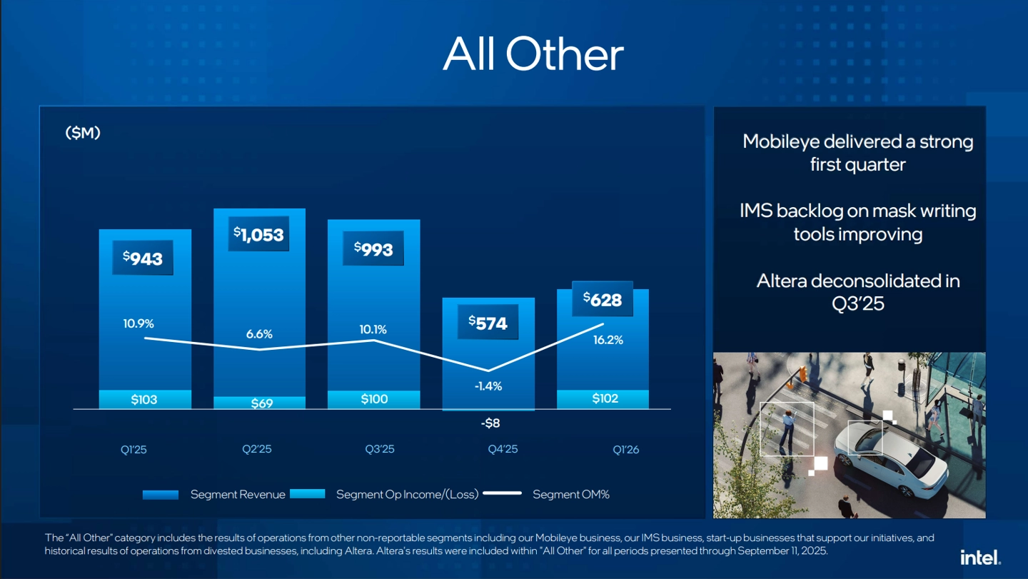 英特尔(INTC)代工服务营收 54 亿美元,增长 16%。