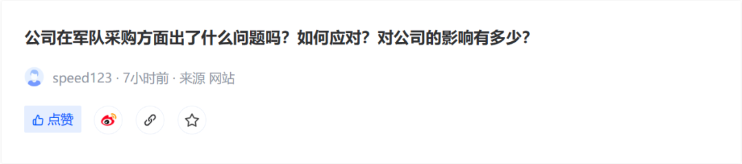 随即引发投资者关注,并在互动平台询问“公司在军队采购方面出了什么问题吗?如何应对?对公司的影响有多少?”