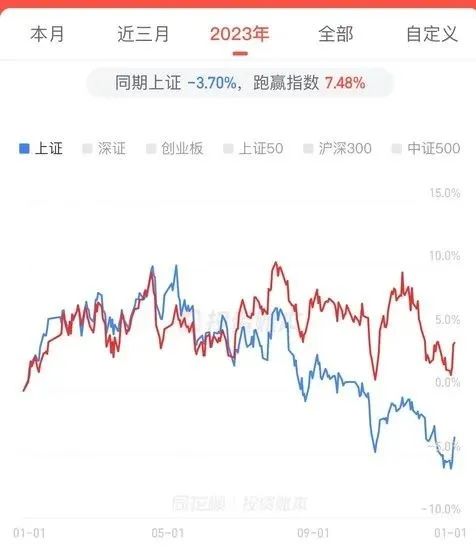 虽然在地产股上巨亏,但是紫金陈在2023年投资总结中写道:“我今年就败在万科和华侨城两个拖油瓶,其他票还好,毕竟做分散低估的。”他发的年度收益图显示,2023年收益为3.78%,跑赢上证指数7.48%。