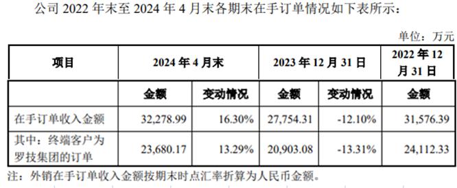 从在手订单情况统计,各报告期末公司在手订单较为充足。截至今年4月末,随着下游客户对未来销量信心的恢复,客户的需求有所回升,公司在手订单金额达3.23亿元,较去年末增加16.3%,在手订单创出过去两年新高。其中,公司终端客户为罗技集团的在手订单在宏观经济环境下行、全球消费萎靡等因素的影响下,呈先降后升的趋势,截至4月末订单金额为2.37亿元,占公司在手订单总额的73%。