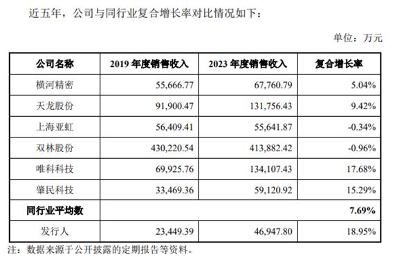 业绩方面,公司保持较好的成长性,2019年至2023年,公司营业收入复合增长率为18.95%,高于同行业可比公司7.69%的平均复合增速,近5年公司净利润复合增长率为22.97%。