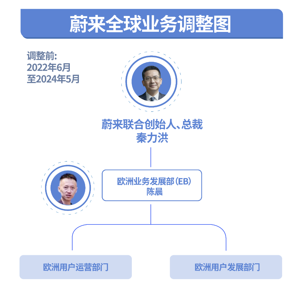 彼时,蔚来将公司一级部门“全球业务发展”更名为“欧洲业务发展”,负责人仍为陈晨,在该部门下还新设了两个二级部门——“欧洲用户运营部门”和“欧洲用户发展部门”。