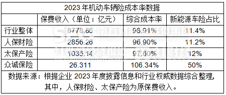 中国人保(601319)副总裁、人保财险总裁于泽在中国人保2023年度业绩发布会上表示:“我们对车险的管理水平好于行业大概2~3个点,加上我们对新能源车的成本管控,客户选择做的力度更大一点,我们认为我们会好于行业3个点以上。”他判断,整个行业新能源车险的赔付率大概比燃油车高10个百分点以上。