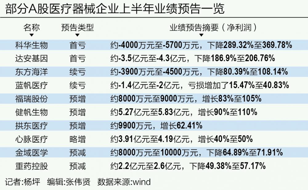 随着A股2024年半年度业绩预告收官,部分医疗器械上市公司上半年经营数据浮出水面。