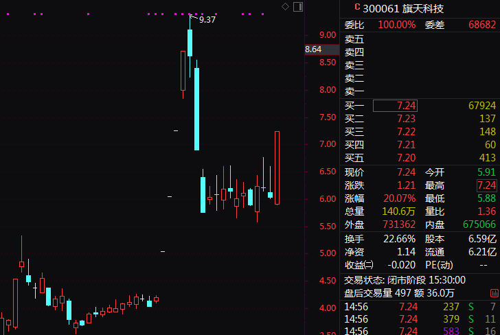 8月20日黑神话悟空概念股午后继续拉升,旗天科技20cm涨停,华谊兄弟(300027)涨超19%,中信出版、浙版传媒、新迅达、国旅联合(600358)涨停,致尚科技(301486)盘中涨近15%、利亚德(300296)涨超11%。