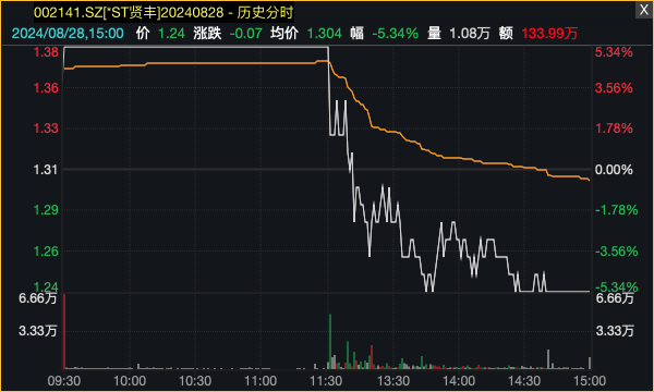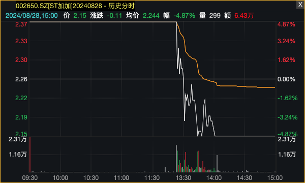 *ST贤丰(002141)、*ST富润(600070)、ST加加(002650)等均走出“天地板”行情,*ST工智(000584)、*ST通脉(603559)、*ST金时(002951)、ST墨龙(002490)等也均出现“炸板”现象,股价盘中在巨量抛售下,砸开涨停直线下挫。