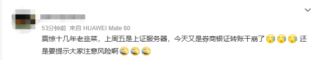 除了券商交易延时,还有部分投资者反馈银转证功能卡顿,无法给账户充值。