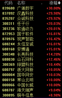 虽然上午指数波动较大,但科技股的赚钱效应却是爆棚。数据安全、华为概念、AI、消费电子等板块大涨。上午收盘,上证指数上涨0.09%,深证成指上涨0.5%,创业板指上涨0.91%。北交所上午大爆发,北证50指数上涨6.53%,板块内个股全线上涨,6只个股迎来30%涨停。