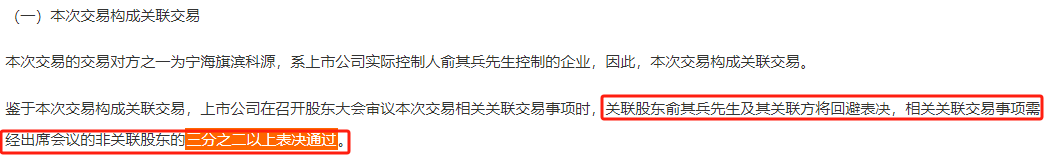由于本次交易构成关联交易,上市公司在召开股东大会审议本次交易相关关联交易事项时,关联股东俞其兵及其关联方将回避表决,相关关联交易事项需经出席会议的非关联股东的三分之二以上表决通过。也就是说,此次交易能否最终成行,实际上掌握在旗滨集团实控人之外的中小股东手中。