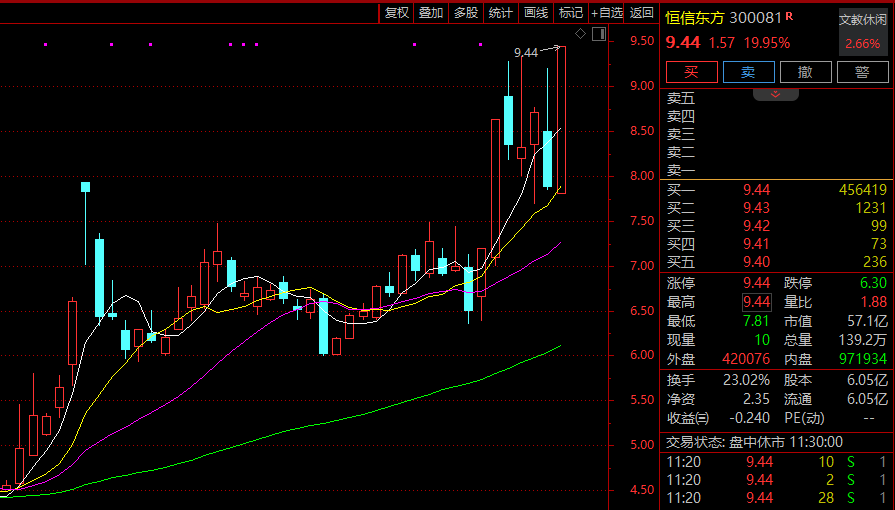 IP经济概念早间放量高开高走,板块指数大涨逾2%,半日成交由昨日全天的30.8亿元激增至逾300亿元。恒信东方(300081)略微低开后仅用2分钟就垂直20%涨停,股价创10个月来新高;华立科技(301011)在连续2个20%涨停后,今日再度触及涨停,创近3年新高(复权,下同);广博股份(002103)同样快速涨停,连续第6日封板,创7年多新高;东方智造(002175)亦秒速涨停,6日5涨停。