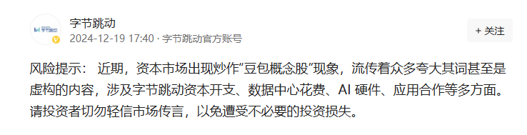 字节跳动发布风险提示!“豆包概念股”迎来一盆“冷水”,超10家上市公司回应无合作