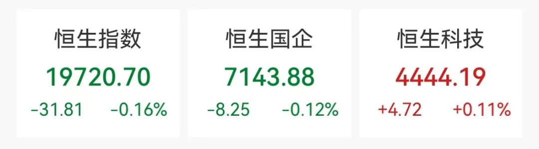 12月20日,港股主要指数早盘冲高,但午后持续震荡,最终涨跌不一。截至收盘,恒生指数收跌0.16%,报19720.70点;恒生科技指数涨0.11%,报4444.19点;恒生国企指数跌0.12%,报7143.88点。