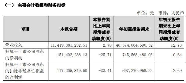 2024年第三季度,中国黄金(600916)实现营业收入114.19亿元,同比下降2.78%;扣非后净利润为1.17亿元,同比下降33.41%。