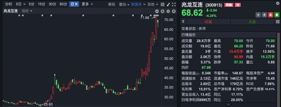 近期最火爆的题材非铜缆高速连接板块莫属,上周股价涨幅最高的兆龙互连,就是该概念的热门公司。