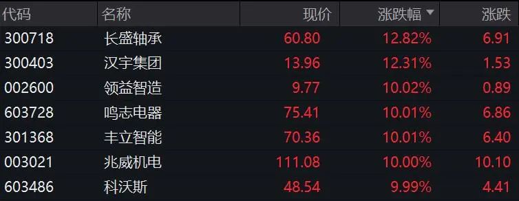 人形机器人(886069)概念早间也放量单边上扬,板块指数一度大涨逾6%,创历史新高(883911),半日成交就接近历史天量。美格智能(002881)连续第4日涨停,股价创3年多来新高,领益智造(002600)、鸣志电器(603728)等逾20股涨停或涨超10%,其中安培龙(301413)、瑞芯微(603893)、贝斯特(300580)等批量创历史新高(883911)(复权)。