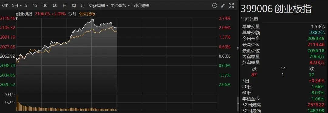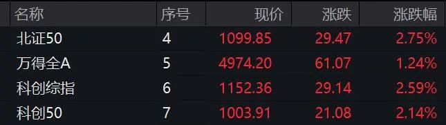 今日早间,A股先是小幅波动,在10:00左右,市场放量直线拉升,创业板指(399006)、科创50(1B0688)、北证50均涨超2%,其中科创50指(588870)数成功收复1000点大关,创出年内新高。超4000只个股上涨,成交呈温和放大趋势。