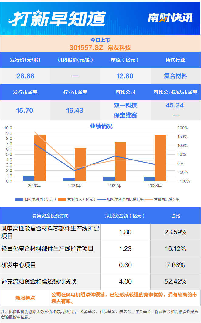 招股书显示,常友科技已与中国中车(601766)、远景能源、运达股份(300772)、三一重能、东方电气(600875)、明阳智能(601615)等国内多家知名风电机组整机厂商建立了稳定、良好的合作关系。