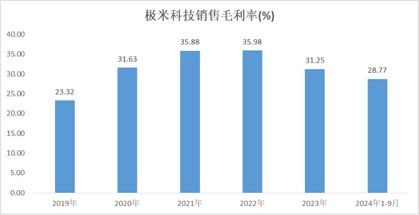竞争的激烈或对极米科技造成了致命的“伤害”,销量是上来了,但是价格却更低了,公司盈利能力持续下降。2023年极米科技的销售毛利率由35.88%下降至31.25%,创下2020年以来最低水平。2024年前三季度,公司销售毛利率仅剩28.77%。