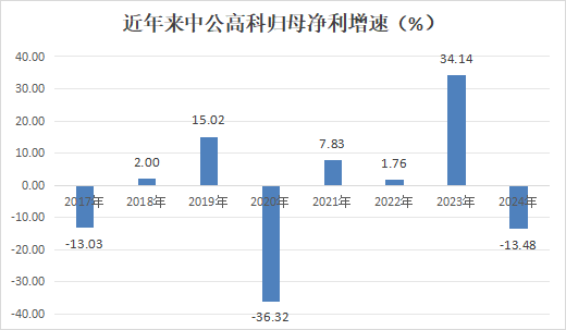 根据中公高科(603860)3月17日发布的年报,2024年公司营业总收入为2.60亿元,同比下降0.22%。归母净利润为4461.99万元,同比下降13.48%。经营活动现金净流入为5097.46万元,同比下降17.57%。而在此前三年,公司业绩相对稳定,2021年至2023年营收增速均超10%;净利增速、扣非净利增速同样连续三年为正。