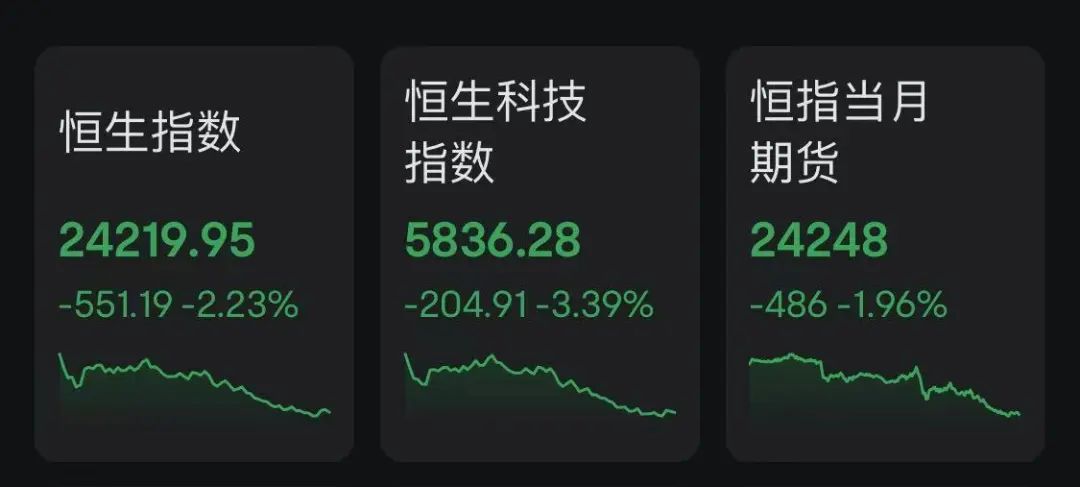 港股市场今日大幅调整,恒生指数跌逾2%,恒生科技指数更是重挫逾3%。板块方面,恒生创新药指数、能源业指数等逆势上扬,恒生互联网科技、恒生传媒指数则大跌。元亨燃气、中国星集团、启明医疗等盘中最高涨幅均超过50%,恒大汽车、万国数据、美图公司等大跌超10%。