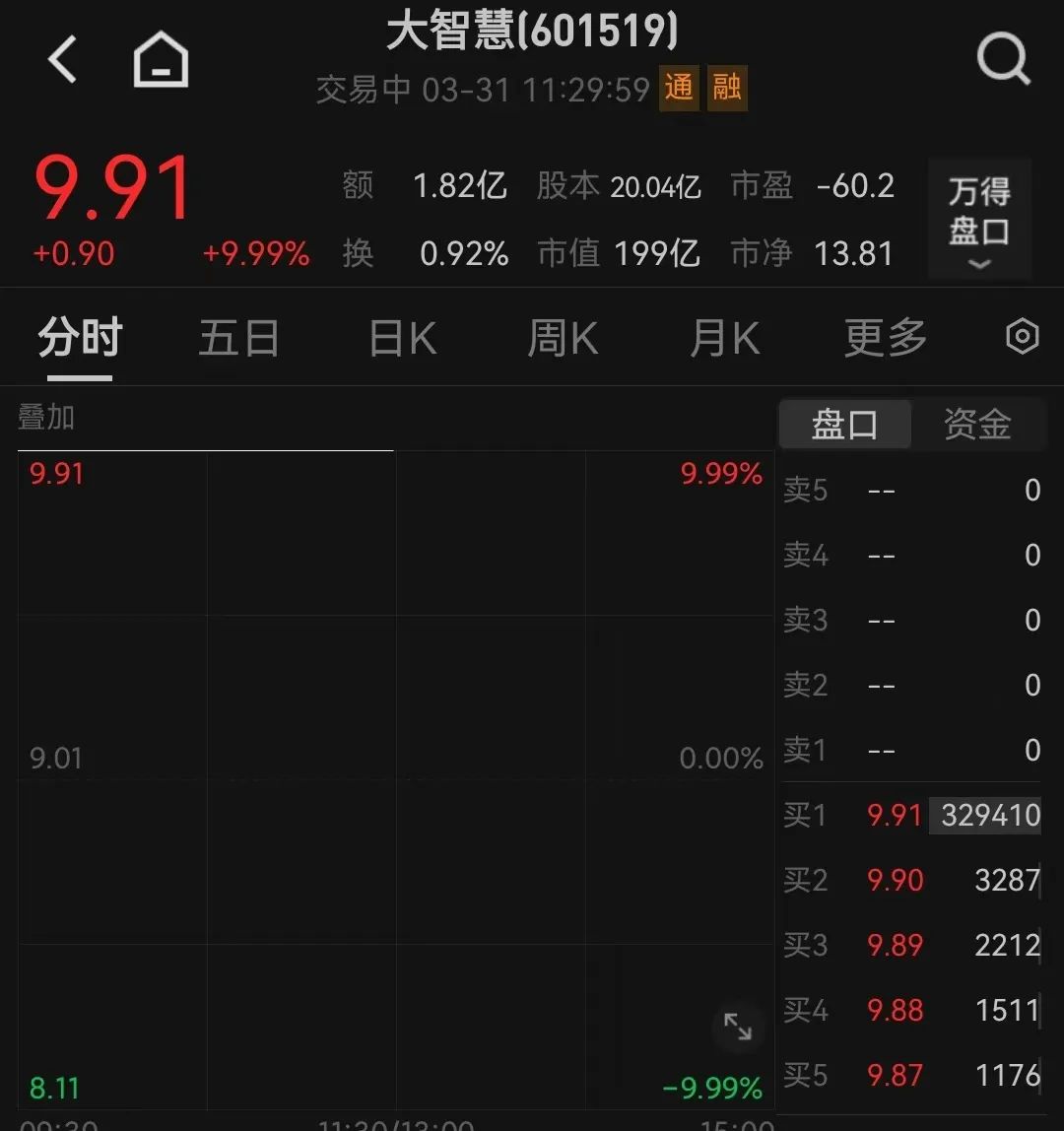 湘财股份、大智慧今日复牌,上午盘中双双涨停。