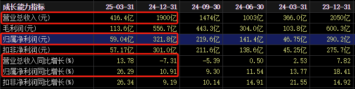 2024年,格力电器实现营业总收入1900.38亿元,同比下滑7.31%。不过,得益于销售费用大降,其归母净利润反而同比增长了10.91%,录得321.85亿元。2025年一季度,格力电器营业收入和归母净利润则分别录得416.4亿元和59.04亿元,同比分别增长13.78%和26.29%。