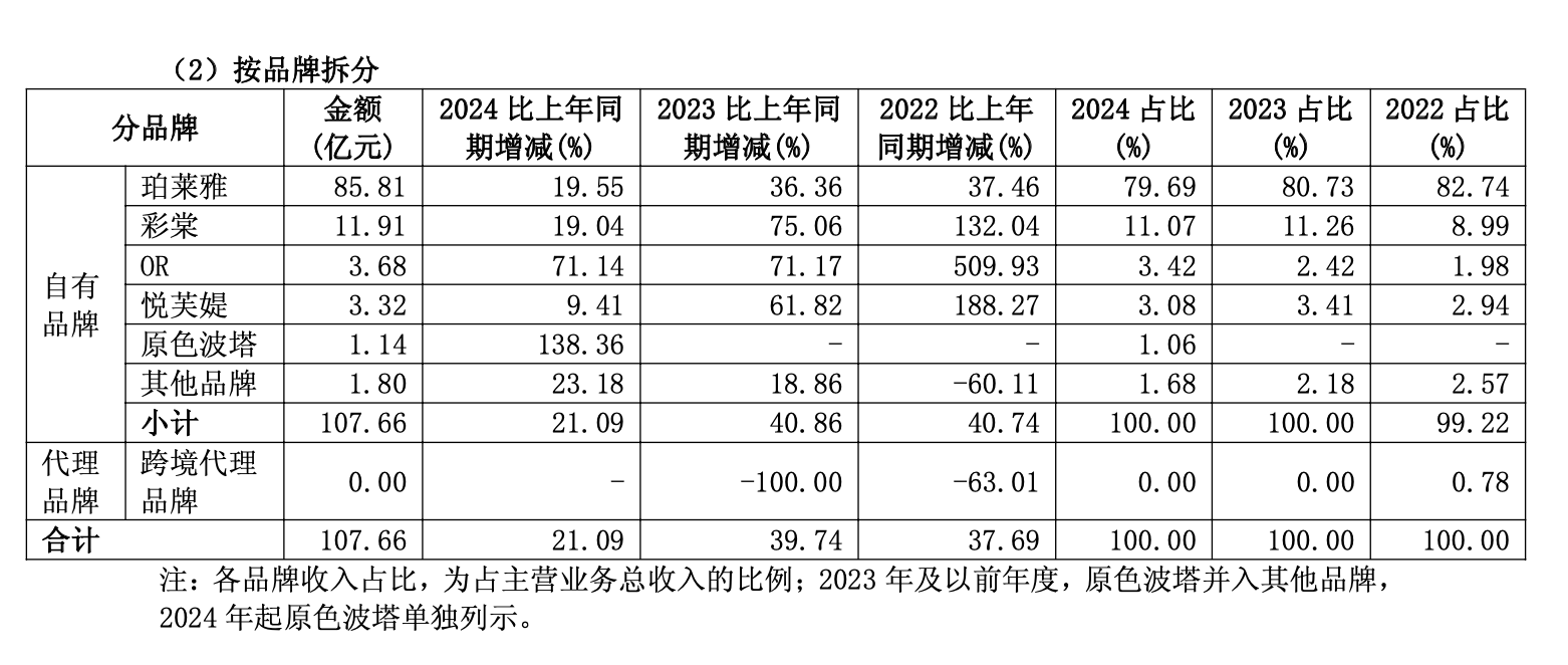 (各品牌收入占比,图片来源于珀莱雅2024年年报)