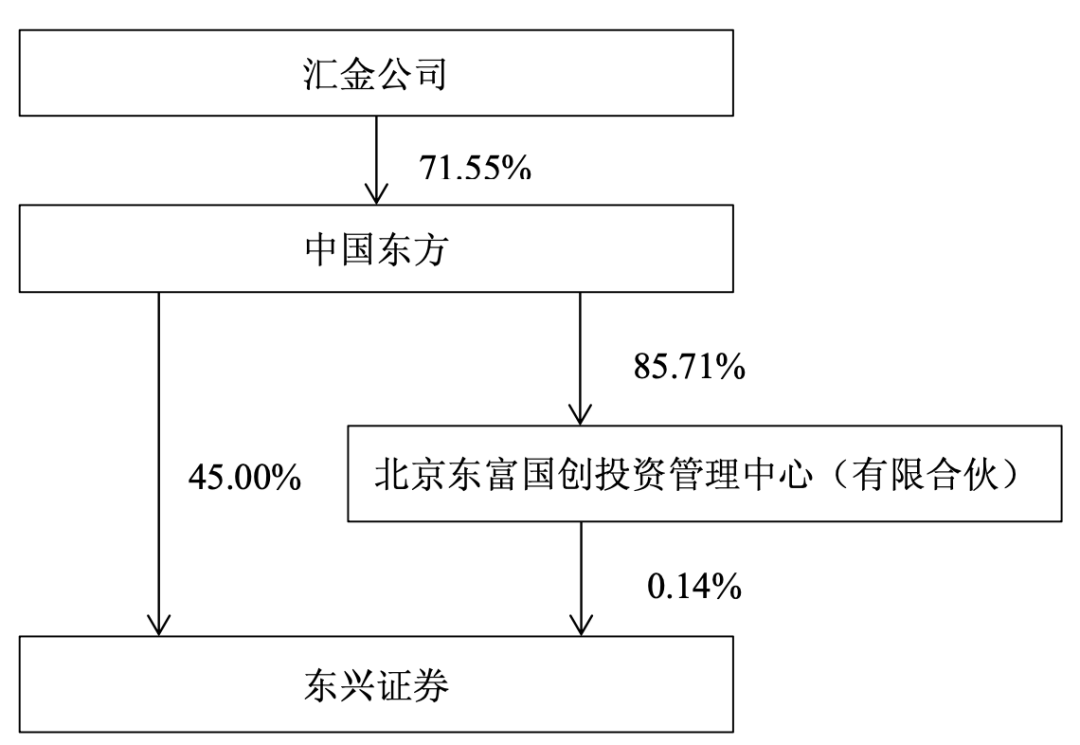 具体来看,财政部将其所持有的中国东方488.30亿股股权(占比为71.55%)全部划转至中央汇金。因中国东方持有上市公司东兴证券的股份,中央汇金间接持有东兴证券。