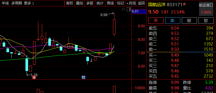 市场热点方面,受中美贸易谈判利好影响,AH航运概念股今日午后联袂大涨,A股航运概念指数临近收盘时放量快速拉升涨逾2%,逼近历史最高点。国航远洋一度冲击30%涨停,宁波远洋(601022)、南京港(002040)、海通发展(603162)、凤凰航运(000520)等集体在尾盘直线涨停。