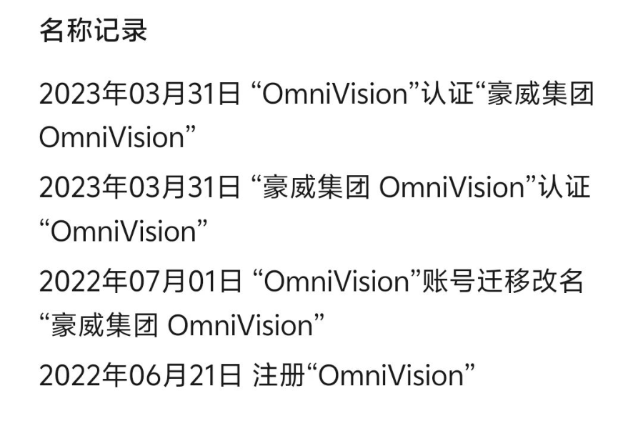 此外,韦尔股份官方微信公众号也一直为豪威集团。据变更记录,韦尔股份于2022年6月注册“OmniVision”,7月账号迁移改名“豪威集团 OmniVision”。