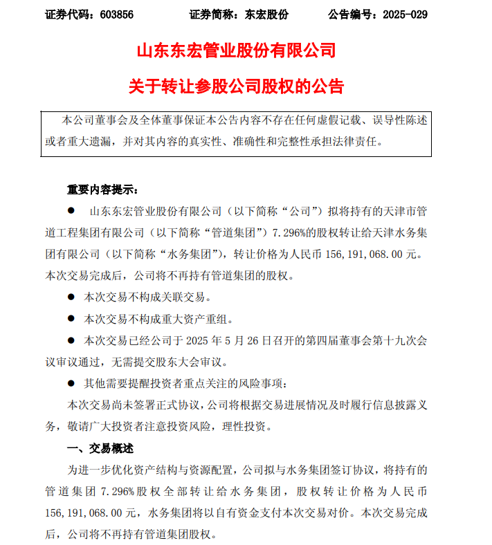 5月26日,日照港公告称,公司全资子公司集发公司拟与中铝矿业共同出资设立合资公司中铝(日照)矿产资源发展有限责任公司,注册资本6.47亿元,集发公司持股35%,认缴出资2.26亿元(土地资产作价出资);中铝矿业持股65%,认缴出资4.21亿元(货币出资)。合资公司将提升日照港大宗干散货优势,完善港口服务功能。此次投资不构成关联交易,也不构成重大资产重组,无需提交股东会审议。