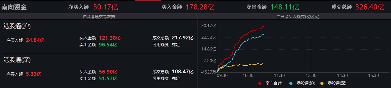 人民财讯5月28日电,南向资金持续买入,截至目前,净买入额达30亿港元。