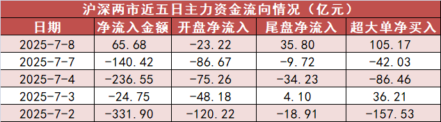 1. A股市场主力资金净流入65.68亿元