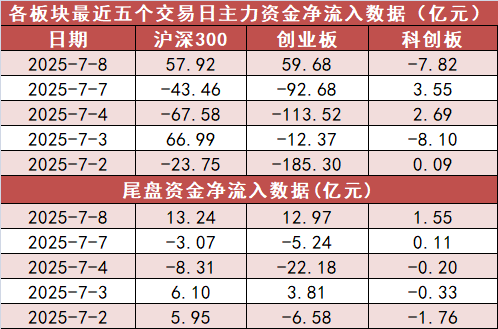 沪深300今日主力资金净流入57.92亿元,创业板净流入59.68亿元,科创板净流出7.82亿元。