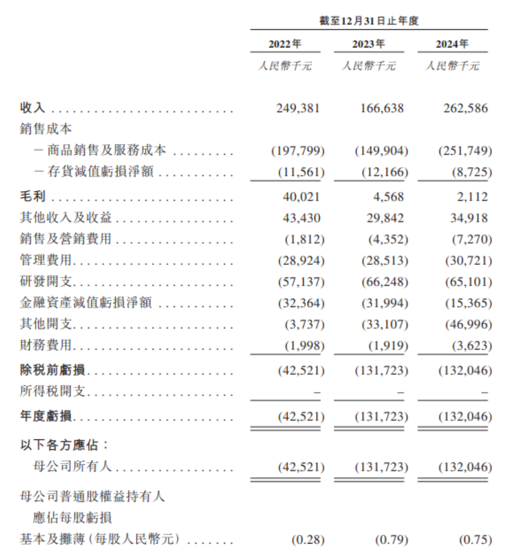 招股书显示,2022年、2023年、2024年,公司经营现金流出净额分别为2.26亿元、1.13亿元、1.40亿元,主要由于大量销售成本及研发开支带来的除税前亏损。