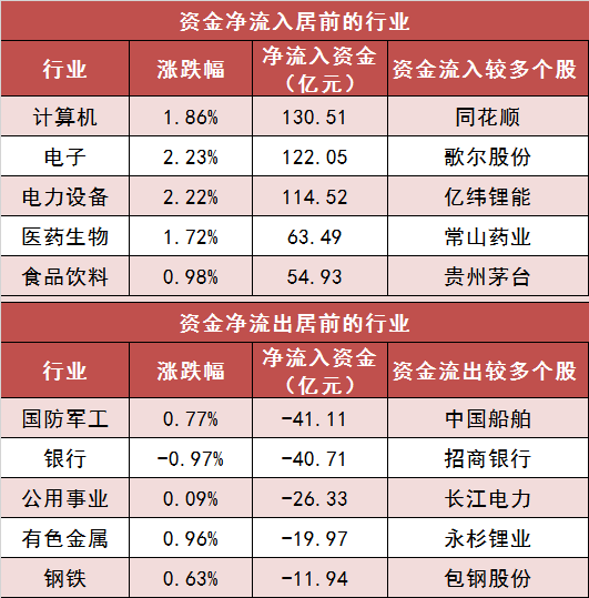 3.计算机等行业实现净流入