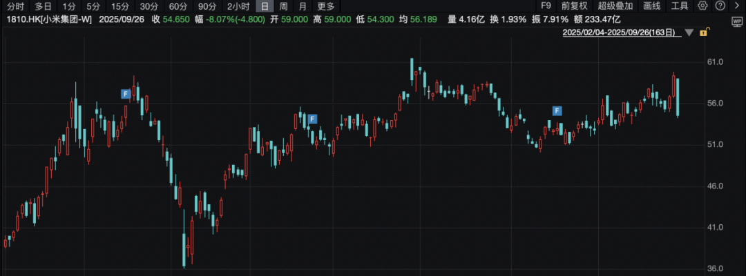 9月26日,小米集团-W(HK1810)收跌8.07%,成交额达233.47亿港元。截至9月26日,小米集团-W(HK1810)股价年内累计涨幅为58.41%。