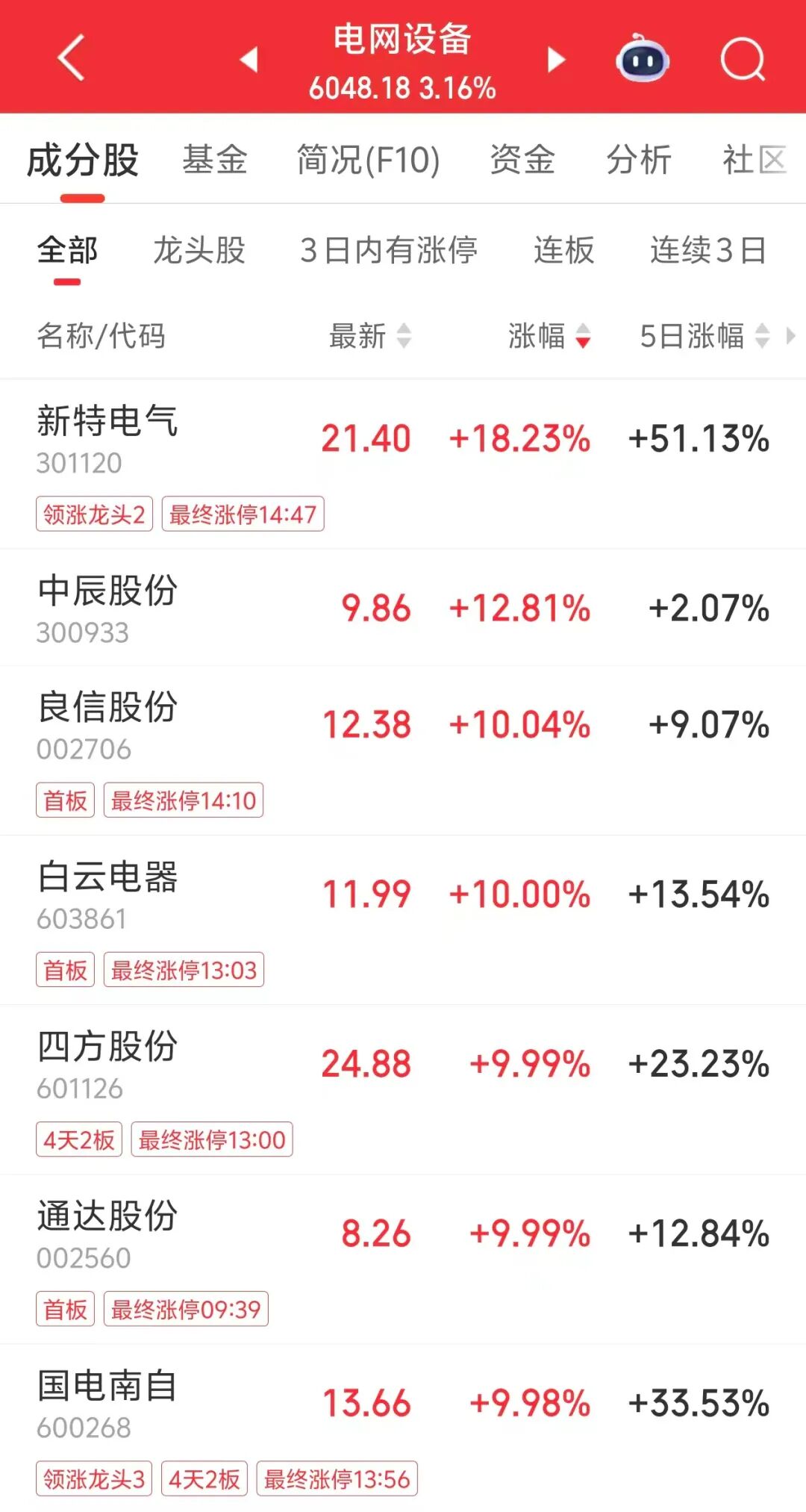 今日午后,电网设备板块拉升,新特电气涨超18%,良信股份、白云电器等个股涨停。