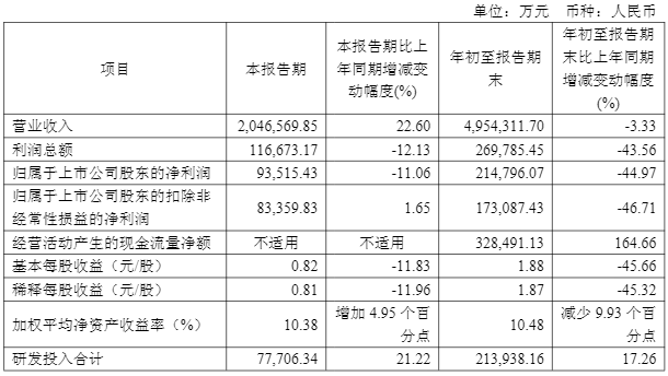在业绩方面,根据合盛硅业最新公布的三季报,公司在报告期内实现营业收入54.3亿元,同比下降23.51%;归属于上市公司股东的净利润 为7566.75万元,同比下降84.12%。尽管同比仍为负增长,但相较于上半年亏损态势,单季度利润指标已实现转正。对于利润变化,合盛硅业称,主要受产品销量和销售价格同比下降,以及光伏板块停工损失等因素影响。