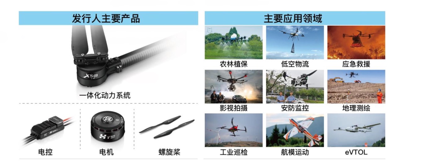 2015年,公司开始切入无人机动力系统市场,研发出电控电机、螺旋桨协同设计的一体化动力系统,率先实现多领域通用动力平台化。
