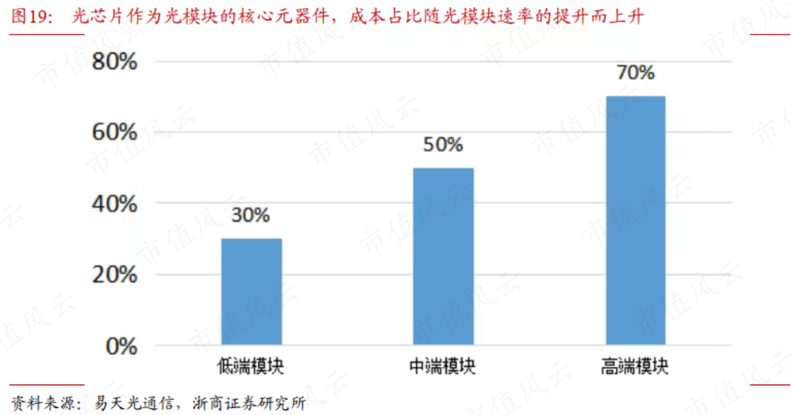 其中光芯片是核心环节,特别是高速率光芯片的成本要占到整个光模块的70%。