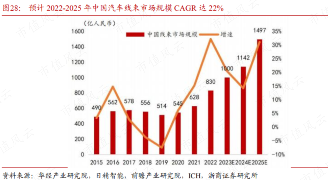 受益于汽车电动化、智能化趋势,汽车线束行业享有千亿级的远期成长空间,行业增速也算亮眼。