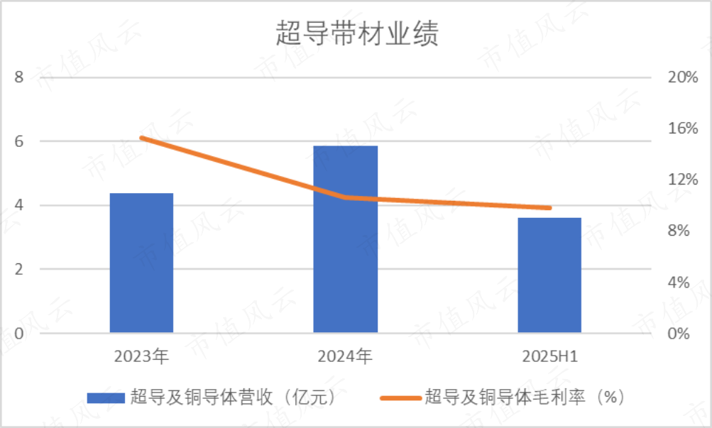 2025年上半年,超导带材营收虽同比增长51.32%至3.6亿元,但毛利率却同比大幅下滑6个百分点,至9.83%,连10%都不到,子公司东部超导上半年仍亏损2,163万。