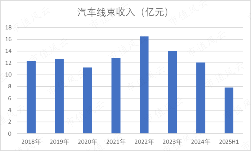 从营收结构来看,汽车线束是公司第一大收入来源,2024年营收12.06亿元,占比近30%。