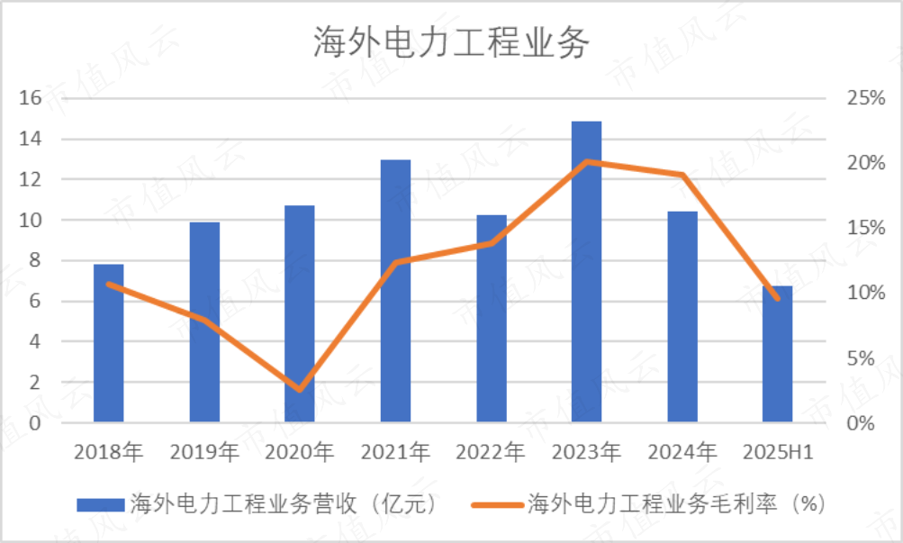 比方说今年上半年,受孟加拉项目减少影响,电力工程业务毛利率大幅下滑12.4个百分点至9.55%,毛利同比下跌近50%,成为拖累整体利润的主因。