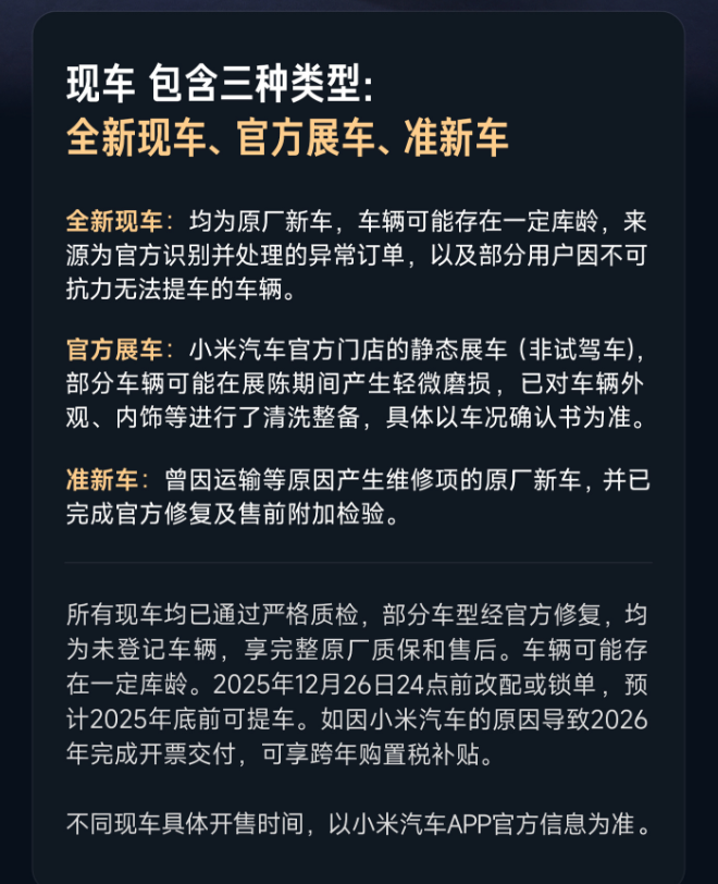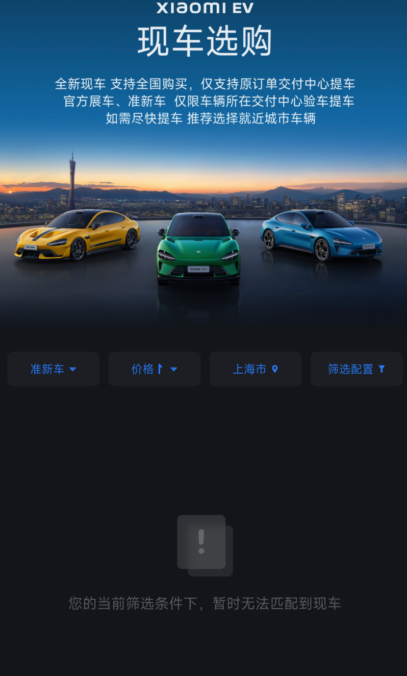 除了常规新车的交付外,小米还开放了现车选购渠道,进一步扩大了市场供给。