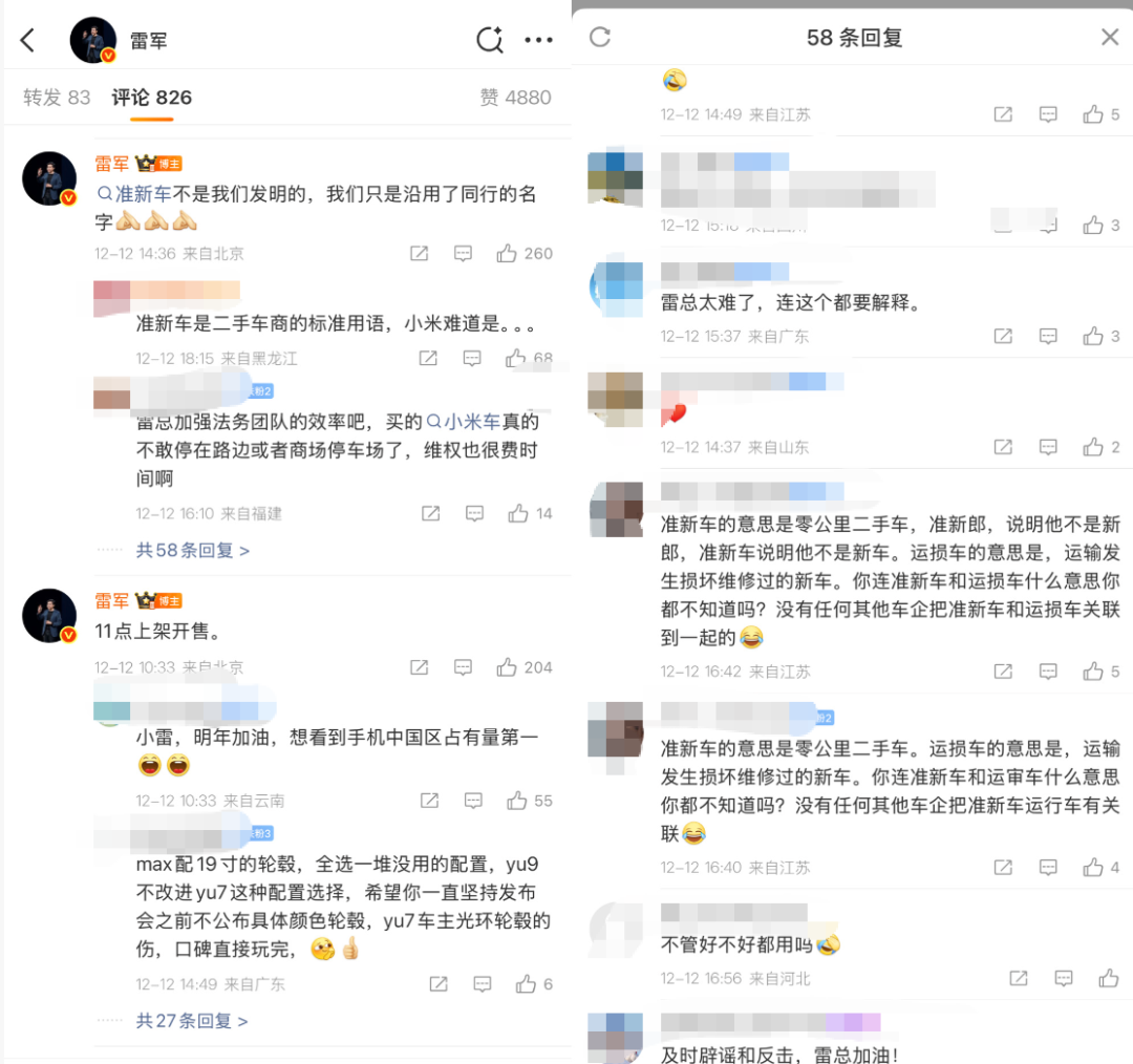 对此,雷军发文回应解释了小米准新车的含义,并在评论区表示,准新车不是我们发明的,我们只是沿用了同行的名字。