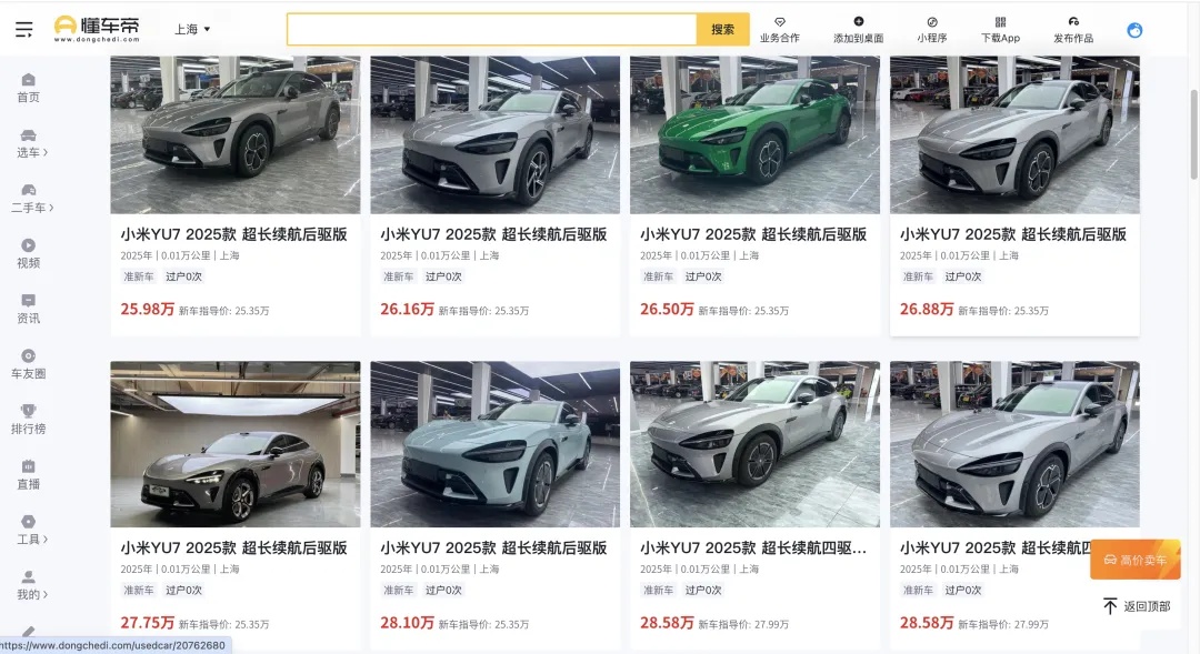 如今,距离该车型上市已过去半年,小米YU7在二手交易中的溢价效应已基本消退。