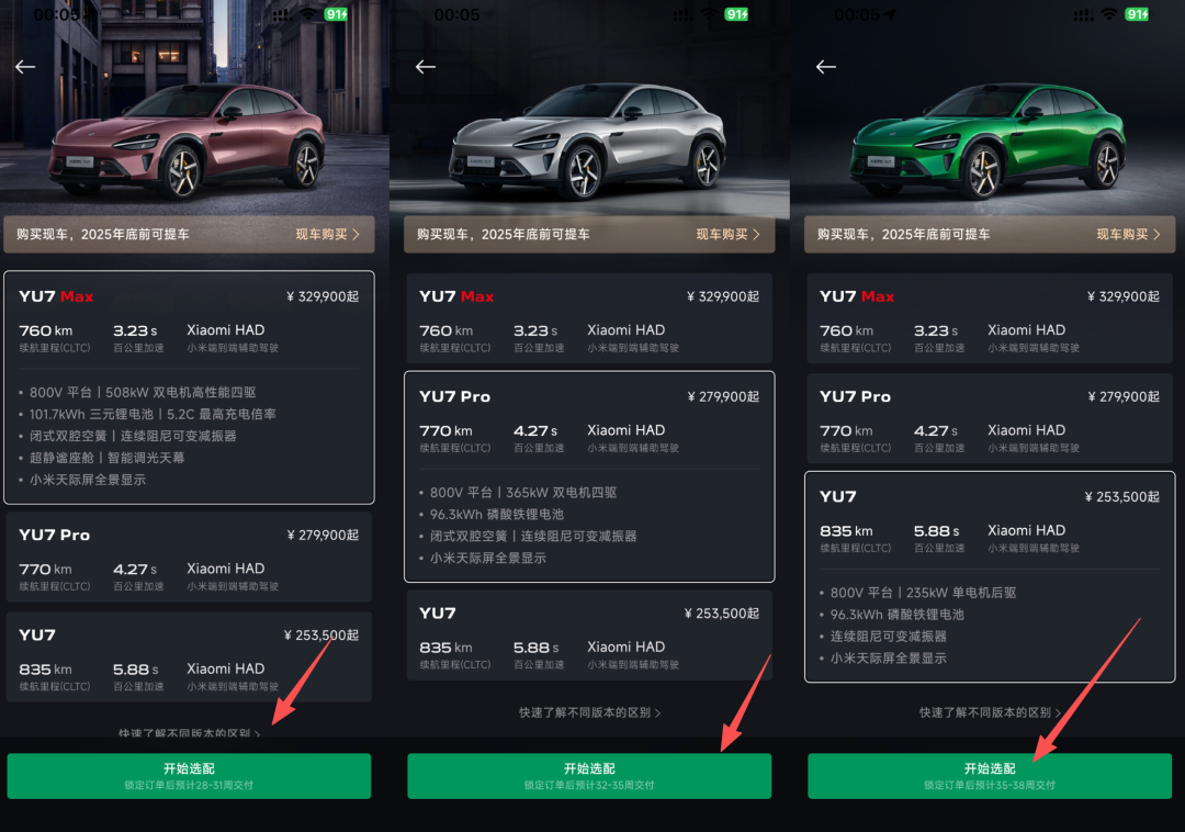 目前在官方渠道订购小米YU7的交付时间为:YU7标准版:预计35-38周;Pro版:预计32-35周;Max版:预计28-31周。这也意味着,现在下单最长需要266天才能交付,超长的交付周期直接推高了小米YU7在二手市场的价格。