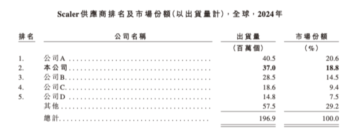 根据弗若斯特沙利文报告,2024年,按出货量计,公司在全球Scaler行业中排名第二,在ASICscaler行业中排名第一。同时,该公司最新一代的车规级TMCU保持了在智能感控规格性能领域的全球领先地位。